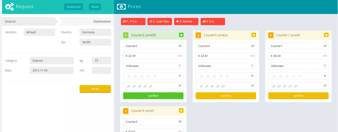 Eenmaal een transportorder ingegeven of kenbaar gemaakt, doorzoekt en vergelijkt PhiRater alle relevante tarieven één op één om ze daarna correct te rangschikken op basis van uw prioriteit zijnde service, lead-time, kost of meest ecologisch. Resultaat: zonder gedoe de beste keuze kant en klaar volledig voorgerekend binnen een minimale tijdsbesteding.